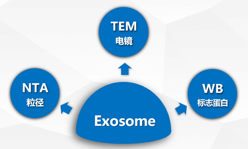 以目前外泌体的分离手段很难获得十分纯净而且单一的外泌体样品,也没有任何一个单一实验可以确定外泌体的存在。根据国际细胞外囊泡协会发表的指导手册《MISEV 2018》,外泌体特征鉴定通过NTA测粒径分布、TEM电镜分析形态、WB检测标志蛋白三项来验证。NTA分析样品中外泌体的粒径分布和颗粒浓度,TEM电子显微镜来观察样品中外泌体的形态特征,WB检测外泌体标志蛋白。